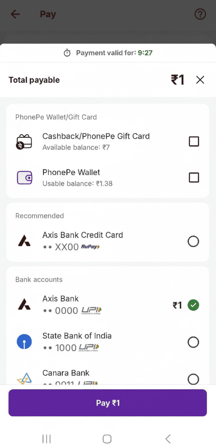Note: The payment flow will work only inside the PhonePe application. A merchant needs to test the flow inside PhonePe application.
